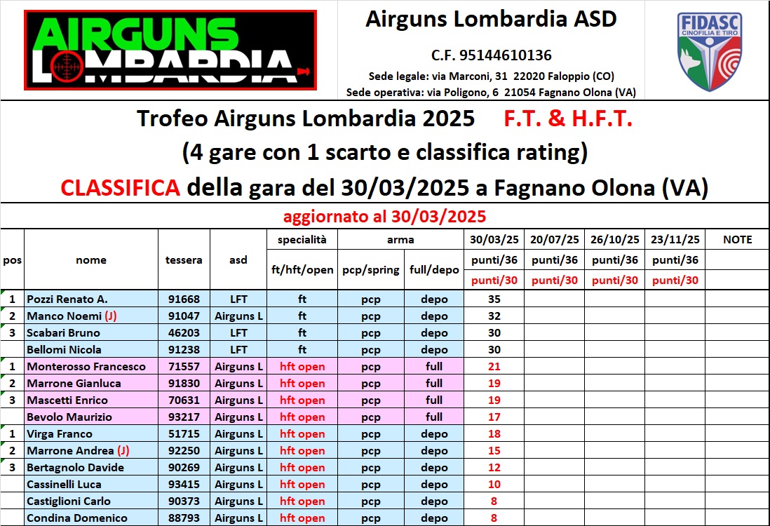 Trofeo Airguns Lombardia FT/HFT