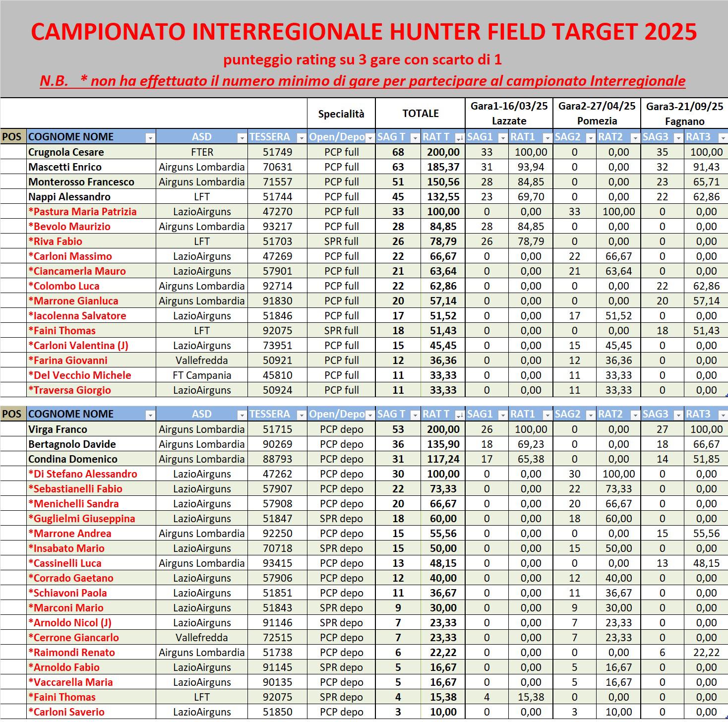 Le classifiche - Campionato Interregionale