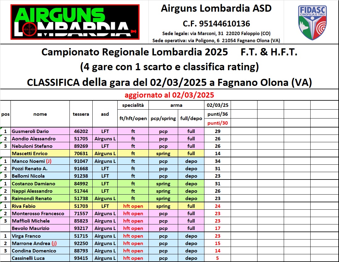Organizzatore ASD LOMBARDIA FT - ASD AIRGUNS LOMBARDIA